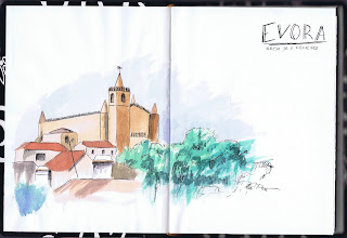 Esta foi mais uma estreia. Um caderno novo no qual quis experimentar a caneta e aguarela. Apesar do papel ser fino e parecer ter pouca gramagem até aguentou bem a água, só criou umas pequenas rugas.
