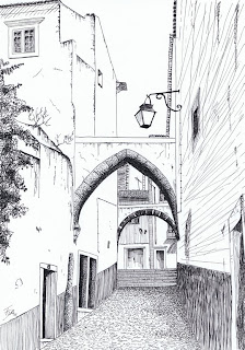 Mais um desenho de Évora. Não sei ao longo dos anos quantas vezes terei subido e descido esta rua junto ao Convento da Graça, mas que foram muitas, isso foram!
