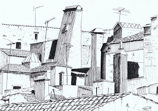 Tal como com os comboios tenho também uma paixão por telhados e chaminés. Não podia deixar de os desenhar.