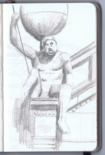 Achei piada a esta estátua. Foi mais uma oportunidade para experimentar a caneta-pincel com tinta-da-china.